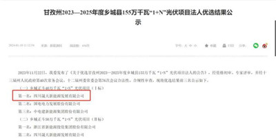 1月10日,根據(jù)甘孜州發(fā)展和改革委員會(huì)發(fā)布的《甘孜州2023—2025年度鄉(xiāng)城縣155萬(wàn)千瓦“1+N”光伏項(xiàng)目法人優(yōu)選結(jié)果公示》《甘孜州2023-2025年度光伏儲(chǔ)能實(shí)證項(xiàng)目法人優(yōu)選結(jié)果公示》,四川發(fā)展(控股)公司旗下晟天新能源成功中標(biāo)鄉(xiāng)城正斗40萬(wàn)千瓦“1+N”光伏項(xiàng)目(Ⅰ標(biāo))和新龍縣色戈20萬(wàn)千瓦供電保障光伏儲(chǔ)能項(xiàng)目。以上2個(gè)項(xiàng)目的取得,意味著晟天新能源在四川省內(nèi)新能源開(kāi)發(fā)取得新的重大進(jìn)展,實(shí)現(xiàn)了2024年項(xiàng)目拓展“開(kāi)門(mén)紅”。