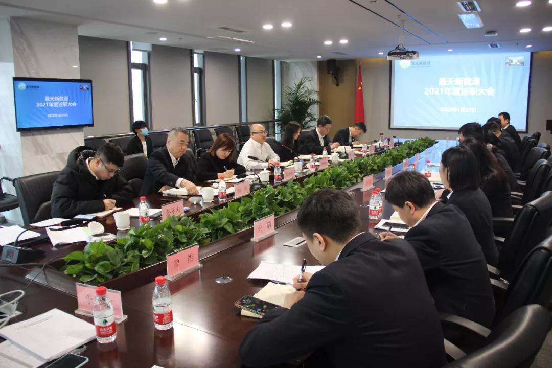 1月25日,晟天新能源召開2021年度述職會議,公司領(lǐng)導(dǎo)班子成員、全體中層管理人員和自營電站負責(zé)人參加會議。黨委副書記、紀(jì)委書記、董事、工會主席張小敏主持會議。