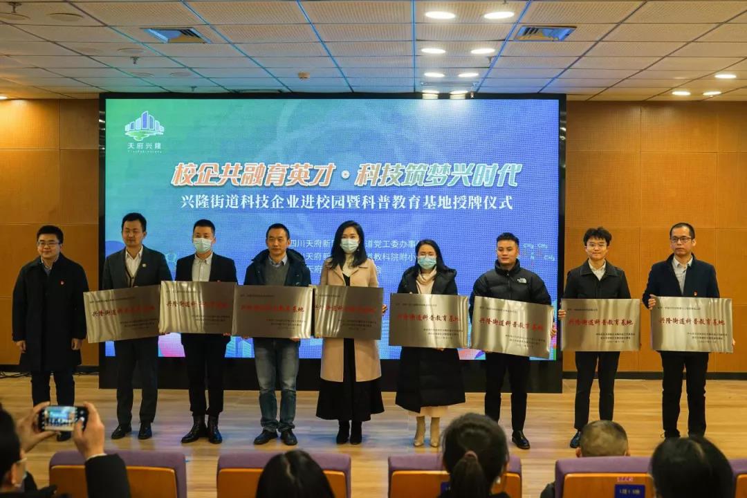12月17日,由天府新區(qū)興隆街道主辦的“校企共融育英才·科技筑夢興時代” 興隆街道科技企業(yè)進校園暨科普教育基地授牌儀式在四川天府新區(qū)興隆街道教科院附小舉行,興隆街道轄區(qū)40多名企業(yè)代表、科普教育導(dǎo)師和10多名校院長參會。授牌儀式上,公司被授為“興隆街道科普教育基地”,2名員工被興隆街道聘為科普教育導(dǎo)師。