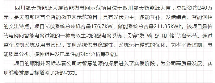 四川晟天新能源大廈智能微電網(wǎng)示范項(xiàng)目成功并網(wǎng)發(fā)電