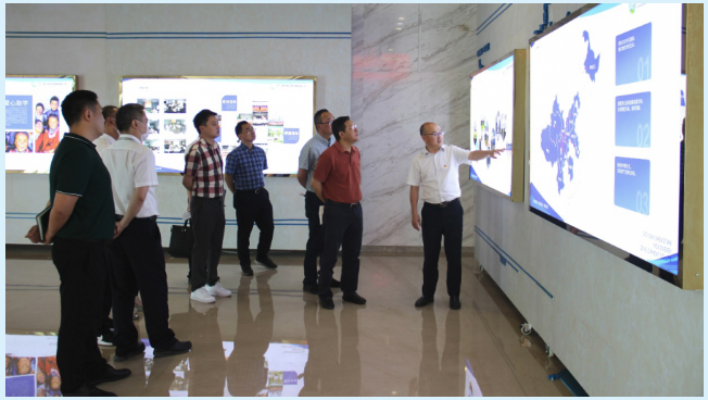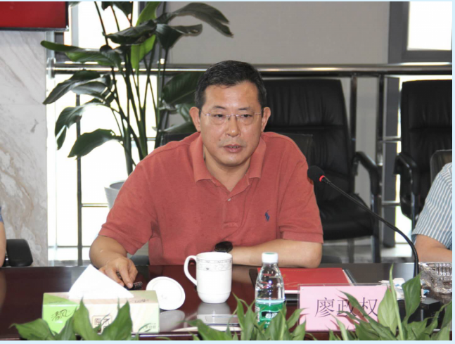廖政權(quán)一行首先來到一樓展廳,李樹成結(jié)合沙盤、展板對公司的發(fā)展情況做了簡要介紹。參觀結(jié)束后,廖政權(quán)一行來到七樓會議室參加座談。觀看公司五周年宣傳片后,李樹成感謝廖政權(quán)、王迅、祝攀峰為公司發(fā)展做出的貢獻,并從公司基本情況、經(jīng)營概述、發(fā)展規(guī)劃、運行維護等方面進行了匯報。