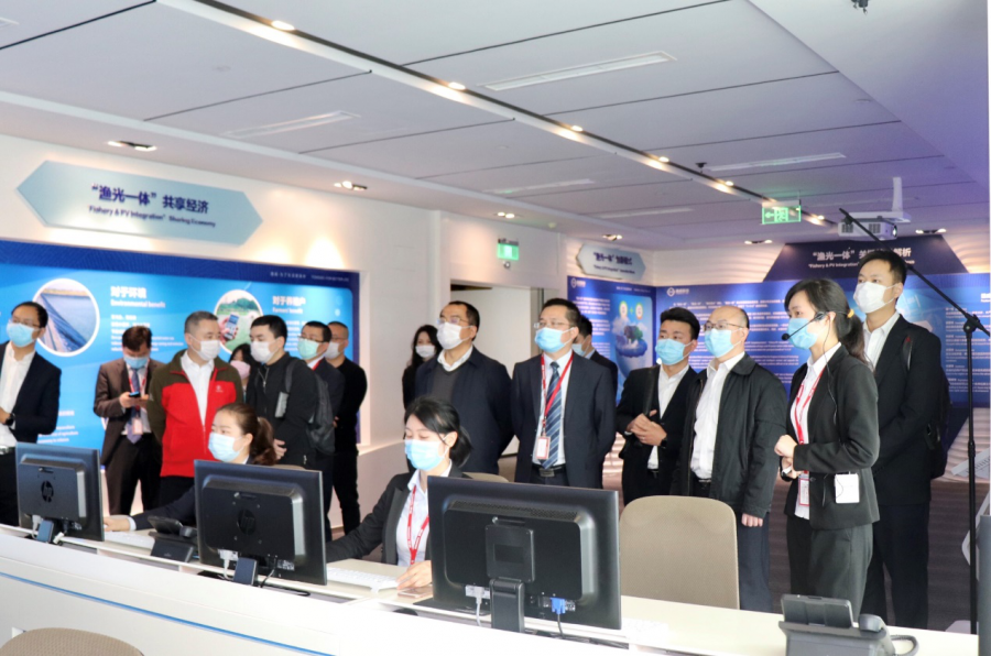 在通威股份四川漁光物聯(lián)技術(shù)有限公司總經(jīng)理饒勇陪同下,李樹成一行參觀了通威企業(yè)展廳,詳細了解了通威股份的發(fā)展歷程,就通威光伏上游電池生產(chǎn)線、水面漁光互補項目、漁光旅游產(chǎn)業(yè)園區(qū)項目等有關(guān)情況進行了重點交流。