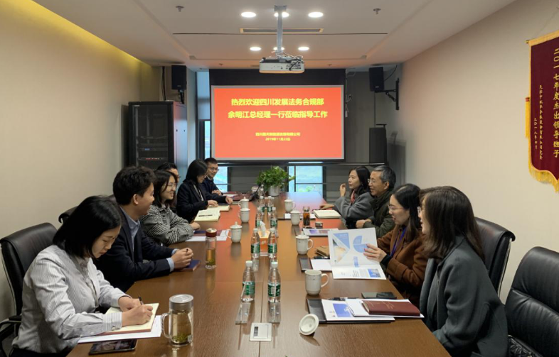 2019年11月22日上午,四川發(fā)展法務(wù)合規(guī)部總經(jīng)理余明江一行蒞臨公司考察調(diào)研。公司總經(jīng)理辜辰瑜,財(cái)務(wù)總監(jiān)陳發(fā)剛,副總經(jīng)理左世強(qiáng)陪同調(diào)研。