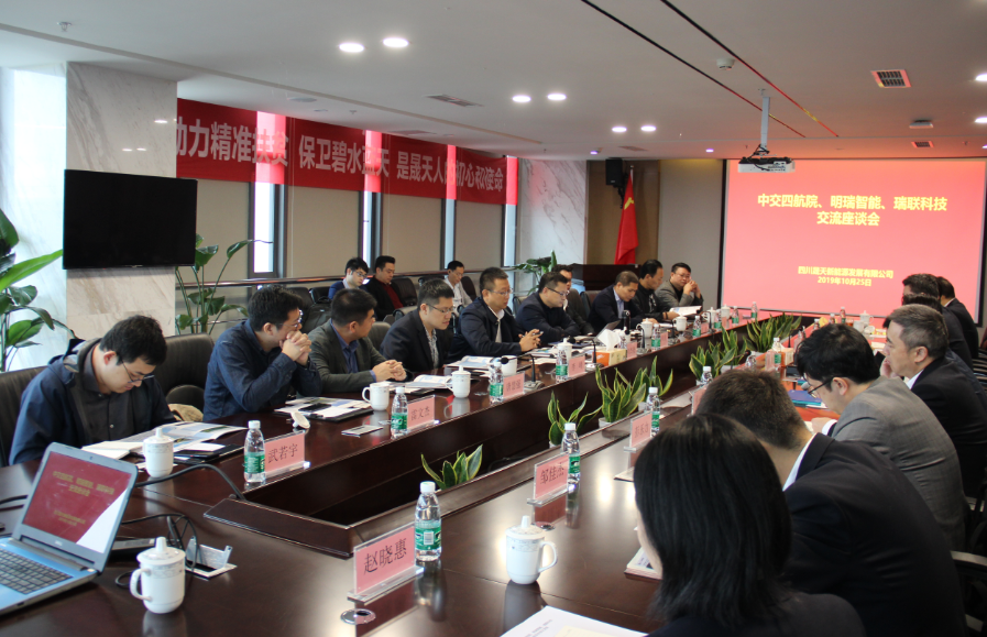10月25日,中交第四航務(wù)工程勘察設(shè)計(jì)院有限公司投資處處長劉杰曉、安徽明瑞智能科技股份有限公司董事長劉明虎、成都瑞聯(lián)智慧城市科技合伙企業(yè)總經(jīng)理肖維一行蒞臨公司交流座談,公司董事、總經(jīng)理辜辰瑜出席座談。
