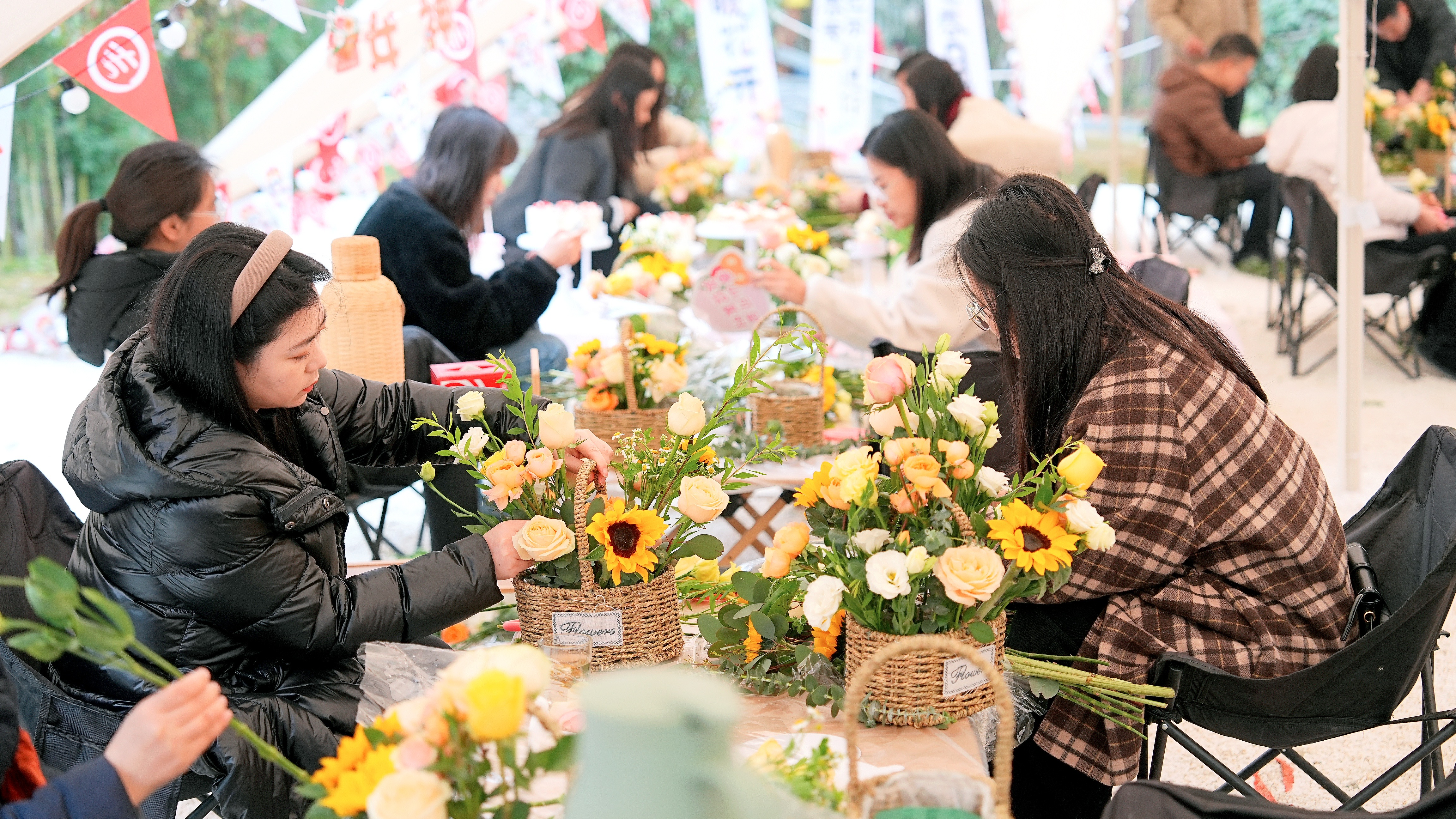 活動(dòng)伊始,女職工們沉浸式體驗(yàn)插花DIY帶來的樂趣。專業(yè)花藝師化身美的傳遞者,用細(xì)膩且富有感染力的語言,為大家介紹各類花材的獨(dú)特氣質(zhì),分享色彩搭配的美學(xué)奧秘,展示不同構(gòu)圖的藝術(shù)魅力。大家精心挑選心儀的花材,認(rèn)真修剪每一片枝葉,充分發(fā)揮巧思,將對(duì)美的理解與對(duì)生活的熱愛融入其中,制作出飽含春日氣息與個(gè)人風(fēng)格的插花作品。現(xiàn)場(chǎng)花香四溢,笑語不斷,女職工們?cè)趧?chuàng)作中舒緩了工作壓力,收獲了滿滿的成就感。