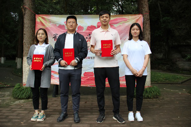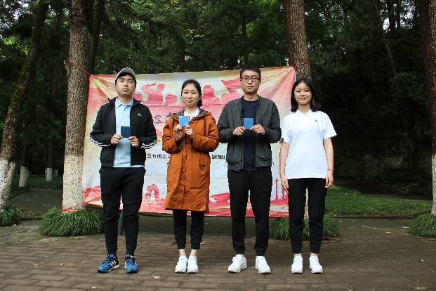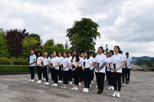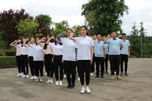 依山而建的書劍廣場里,陳毅元帥的塑像雄踞廣場中央。全體團員青年肅立于陳毅廣場,奏唱中國人民共和國國歌。歌畢,青年團員手持獻(xiàn)花,環(huán)繞陳毅元帥塑像一周,依次敬獻(xiàn)鮮花,并面向陳毅元帥塑像莊重地三鞠躬,表達(dá)對陳毅元帥的深深敬仰和懷念之情。隨后,大家右手握拳,面向團旗重溫入團誓詞:“我志愿加入中國共產(chǎn)主義青年團,堅決擁護(hù)中國共產(chǎn)黨的領(lǐng)導(dǎo),遵守團的章程……”。誓詞響起,再次喚醒了團員青年的使命感和責(zé)任感,堅定了共產(chǎn)主義理想信念。